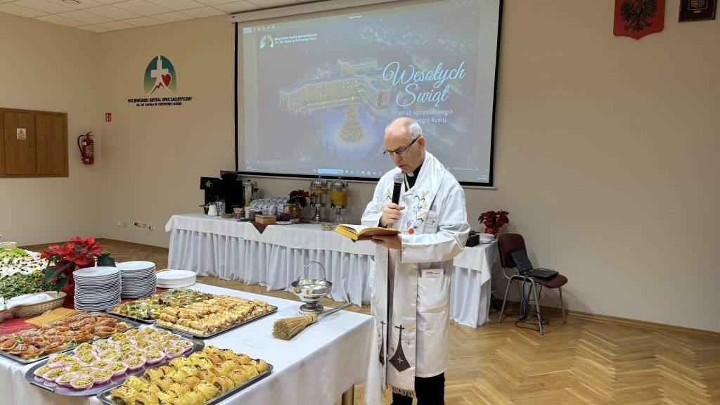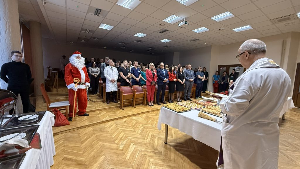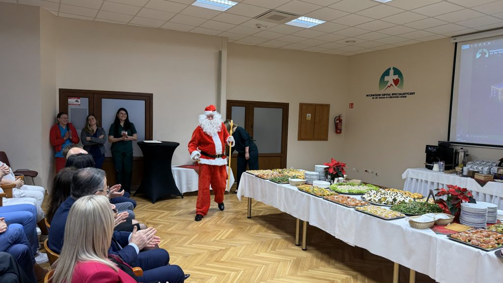 Przedświąteczne spotkanie było okazją do wspólnego zatrzymania się w codziennym pośpiechu, złożenia życzeń oraz podziękowań za całoroczną pracę na rzecz pacjentów. Nie zabrakło modlitwy, dzielenia się opłatkiem oraz wspólnego kolędowania, które stworzyły wyjątkowo ciepłą i rodzinną atmosferę. Miłą niespodzianką dla uczestników była wizyta św. Mikołaja, która wywołała wiele uśmiechów. Coroczne spotkanie wigilijne stało się symbolicznym wyrazem wspólnoty i wzajemnej życzliwości, tak ważnych w codziennej pracy szpitala.